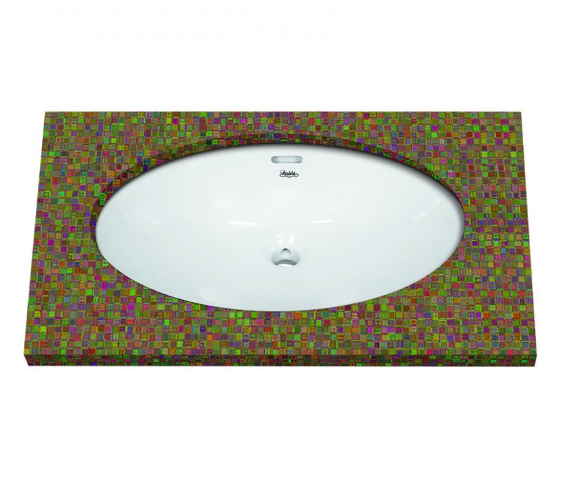 Νιπτήρας πορσελάνης λευκός οβάλ ΗUIDA υποκαθήμενος.